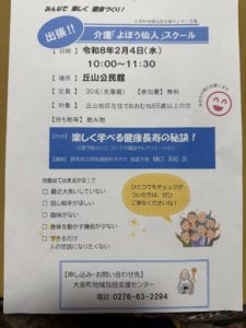 通いの場 地域活動 2025.12.182026.02.04 多くのみなさんと健康について学びました。ありがとうございます。 先月体操教室の新年会に参加させていただきました。 楽しいひとときをありがとうございました。 これからも元気で頑張っていきましょう。